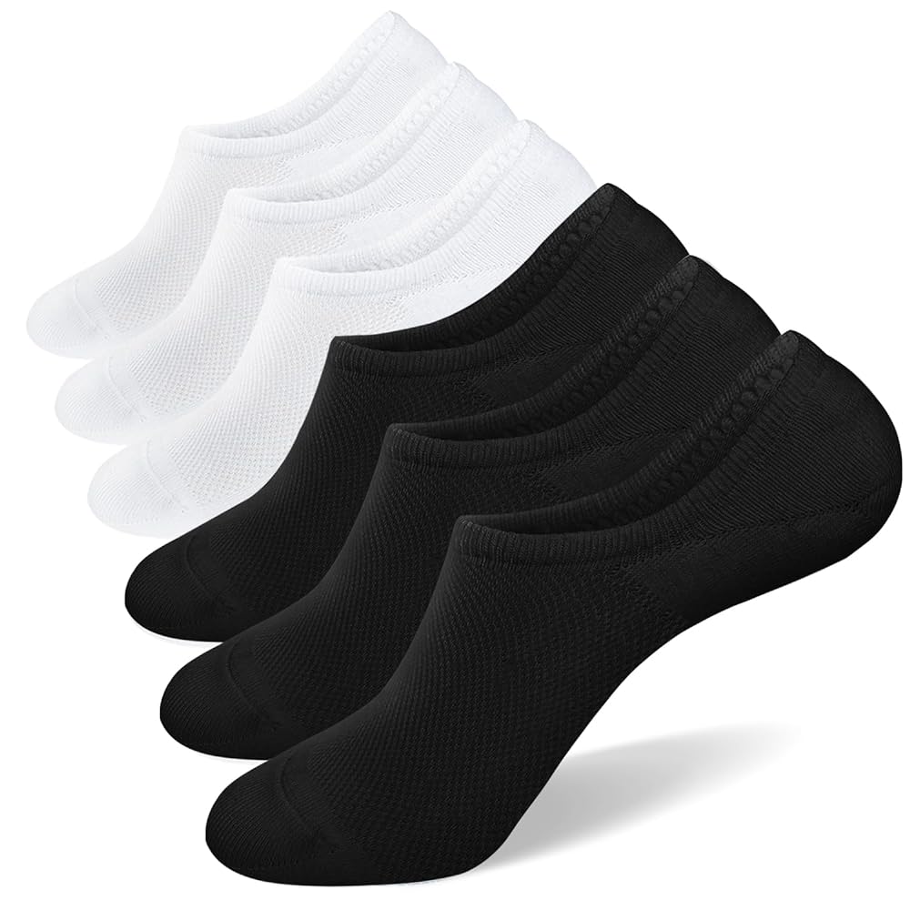 029 Semi-Mesh Men’s Socks, B Opening (3 Pairs Black Base with Black Mesh, 3 Pairs White Base with White Mesh, Size L6)