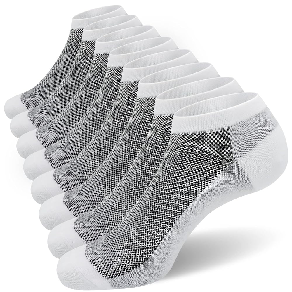 030 Semi-Mesh Men’s Loafer Socks (Mesh Panel, White Base with Black Mesh, Single Pair, Size M8)