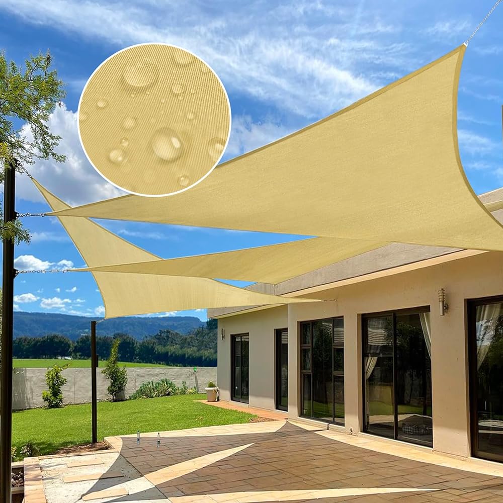 12′ x 12′ x 12′ Sand Color Waterproof Sun Shade Sail, 160g, Standard Stitched Configuration